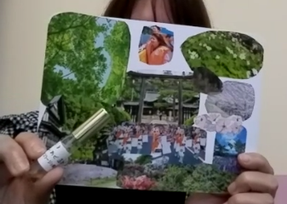 昔々に体験された方とオンライン越しに作品をシェアできたのは、講師にとっても素晴らしい体験でした。ワークショップに続き養成講座も修了され、これからはメイトさんとして、アロマコラージュ療法をクライエントさんのメンタルヘルスに役立てていかれる予定です。応援しています!